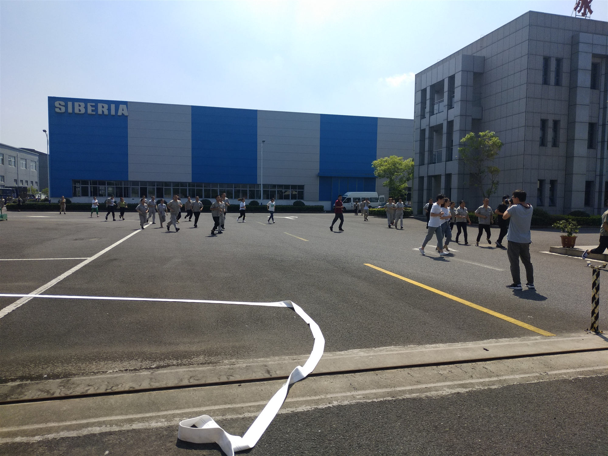 5、缸体车间在张鑫龙带领下从宿舍楼5楼往下疏散。再往公司操场跑